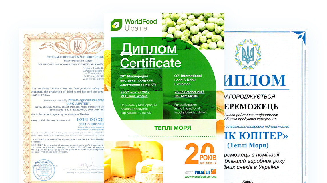 Die Gesellschaft „Tjoplyje Morja“ nimmt für 19 Jahre der Arbeit auf dem Markt die Spitzenpositionen ein und ist der größte Hersteller und Importeur der Fischsnacks. Für diese Zeit erreichte die Gesellschaft hohe Ergebnisse, das Niveau des Professionalismus unseres Teams gibt eine Möglichkeit, die Produkte von hoher Qualität herzustellen, die durch das europäische Zertifikat der Lebensmittelsicherheit ISO 22000:2007 bestätigt sind. Wir benutzen nur innovative und sichere Technologien im Bereich der Herstellung der Produkte.
